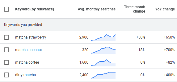 Data pencarian juga menunjukkan bahwa minat pada varian matcha ini bukan cuma wacana. Rata‑rata pencarian bulanan “matcha strawberry” berada di kisaran 2.900 dengan kenaikan tiga bulan terakhir sekitar 50 persen dan pertumbuhan tahun ke tahun sekitar 650 persen. “Matcha coconut” memang lebih kecil, sekitar 320 pencarian per bulan, tetapi tumbuh sekitar 700 persen dibanding tahun lalu, menandakan segmen khusus yang berkembang pesat. “Matcha coffee” ada di kisaran 1.600 pencarian per bulan dengan pertumbuhan tahunan sekitar 82 persen, sedangkan “dirty matcha” menyentuh 2.400 pencarian per bulan dan tumbuh sekitar 400 persen. Angka‑angka ini memberi sinyal jelas bahwa konsumen tidak lagi berhenti di matcha latte, tetapi mulai aktif mencari kombinasi rasa baru berbasis matcha.